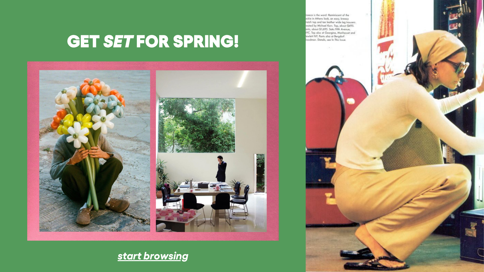 A SHOPPABLE LIFESTYLE DESTINATION, CURATING FASHION — DESIGN — PLACES — MUSIC & MORE. THINK OF IT AS YOUR NEW FAVOURITE DIGITAL MAGAZINE, DESIGNED TO HELP YOU FEEL ALL SET, FOR LIFE.